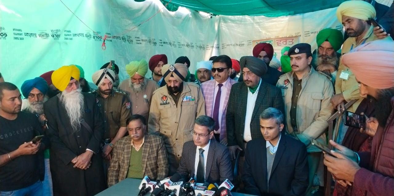 ਖਨੌਰੀ, 15 ਦਸੰਬਰ : ਮਾਣਯੋਗ ਸਪੁਰੀਮ ਕੋਰਟ ਦੇ ਹੁਕਮਾਂ ਤੋਂ ਬਾਅਦ ਖਨੌਰੀ ਬਾਰਡਰ ‘ਤੇ ਪਿਛਲੇ 20 ਦਿਨਾਂ ਤੋਂ ਮਰਨ ਵਰਤ ‘ਤੇ ਬੈਠੇ ਕਿਸਾਨ ਨੇਤਾ ਜਗਜੀਤ ਸਿੰਘ ਡੱਲੇਵਾਲ ਦਾ ਮਰਨ ਵਰਤ ਤੁੜਵਾਉਣ ਪੁੱਜੇ ਕੇਂਦਰੀ ਗ੍ਰਹਿ ਮੰਤਰਾਲੇ ਦੇ ਡਾਇਰੈਕਟਰ ਮਯੰਕ ਮਿਸ਼ਰਾ ਤੇ ਪੰਜਾਬ ਦੇ ਡੀ. ਜੀ. ਪੀ. ਗੌਰਵ ਯਾਦਵ ਨੂੰ ਡਲੇਵਾਲ ਨੇ ਮਰਨ ਵਰਤ ਤੋੜਨ ਤੋਂ ਕੋਰਾ ਜਵਾਬ ਦੇ ਦਿੱਤਾ।