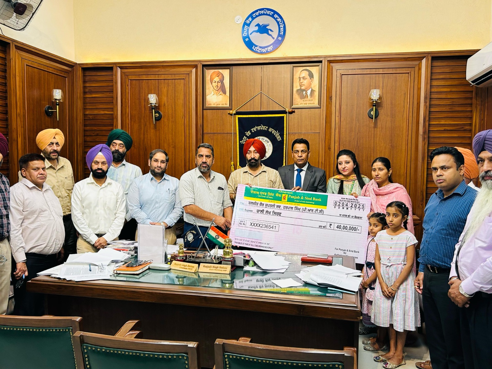 ਪਟਿਆਲਾ :- ਪੀ. ਆਰ. ਟੀ. ਸੀ. ਦੇ ਇਤਿਹਾਸ ’ਚ ਪਹਿਲੀ ਵਾਰ ਹੋਏ ਕਾਰਜ ਦੀ ਸਮੂਹ ਮੁਲਾਜ਼ਮ ਵਰਗ ਬੇਹੱਦ ਸ਼ਲਾਘਾ ਕਰ ਰਿਹਾ ਹੈ। ਦੱਸਣਯੋਗ ਹੈ ਕਿ ਕੁਝ ਸਮਾਂ ਪਹਿਲਾਂ ਮਹਿਕਮੇ ਦੇ ਕਪੂਰਥਲਾ ਡਿੱਪੂ ਵਿਖੇ ਐਡਵਾਂਸ ਬੁੱਕਰ ਦੇ ਤੌਰ ’ਤੇ ਕੰਮ ਕਰ ਰਹੇ ਹਰਪਾਲ ਸਿੰਘ ਦੀ ਡਿਊਟੀ ਦੌਰਾਨ ਅਚਨਚੇਤ ਮੌਤ ਹੋ ਗਈ ਸੀ। ਮੁਲਾਜ਼ਮਾਂ ਦੀ ਪੰਜਾਬ ਐਂਡ ਸਿੰਧ ਬੈਂਕ ਨਾਲ ਹੋਈ ਇਕਰਾਰਨਾਮੇ ਮੁਤਾਬਕ ਪੀ. ਆਰ. ਟੀ. ਸੀ. ਸਮੂਹ ਮੁਲਾਜ਼ਮਾਂ ਨੂੰ ਇੰਸ਼ਰੈਂਸ ਕਵਰ ਮੁਹੱਈਆ ਕਰਵਾਇਆ ਗਿਆ ਸੀ। ਇਸ ਤਹਿਤ ਮ੍ਰਿਤਕ ਦੀ ਧਰਮਪਤਨੀ ਦਲਜੀਤ ਕੌਰ ਪਿੰਡ ਕੰਗਰੋਡ਼ ਨੂੰ ਬੈਂਕ ਅਧਿਕਾਰੀਆਂ ਵੱਲੋਂ ਚੇਅਰਮੈਨ ਹਡਾਣਾ ਅਤੇ ਮਹਿਕਮੇ ਦੇ ਉੱਚ ਅਧਿਕਾਰੀਆਂ ਦੀ ਮੌਜੂਦਗੀ ’ਚ 40 ਲੱਖ ਦਾ ਚੈੱਕ ਸੌਂਪਿਆ ਗਿਆ।