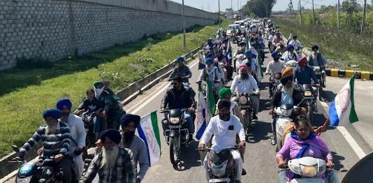 ਸ਼ਹਿਰ ’ਚ ਮੋਟਰਸਾਈਕਲ ਮਾਰਚ ਕਰ ਕੇ ਕੀਤਾ ਰੋਸ ਪ੍ਰਦਰਸ਼ਨ