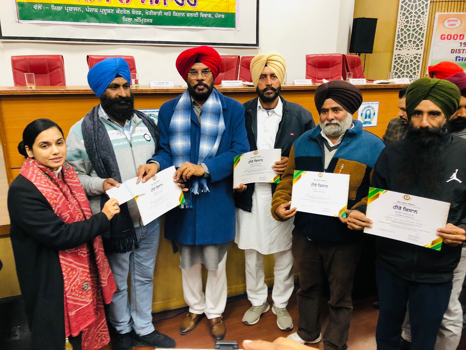 ਅਜਨਾਲਾ, 23 ਦਸੰਬਰ – ਜ਼ਿਲਾ ਪ੍ਰਸ਼ਾਸਨ ਵੱਲੋਂ ਇਕ ਨਿਵੇਕਲੀ ਪਹਿਲਕਦਮੀ ਕਰਦੇ ਹੋਏ ਝੋਨੇ ਦੀ ਪਰਾਲੀ ਨੂੰ ਅੱਗ ਨਾ ਲਗਾਉਣ ਵਾਲੇ ਜ਼ਿਲੇ ਦੇ 100 ਕਿਸਾਨਾਂ ਨੂੰ ਕਿਸਾਨ ਹੀਰੋ ਸਨਮਾਨ ਪੱਤਰ ਅਤੇ ਇਨਾਮੀ ਰਾਸ਼ੀ ਦੇ ਕੇ ਸਨਮਾਨਿਤ ਕੀਤਾ ਗਿਆ।