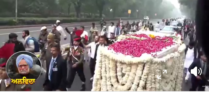 ਸਾਬਕਾ ਪ੍ਰਧਾਨ ਮੰਤਰੀ ਡਾ. ਮਨਮੋਹਨ ਸਿੰਘ 92 ਸਾਲ ਦੀ ਉਮਰ ਵਿੱਚ ਇਸ ਸੰਸਾਰ ਨੂੰ ਅਲਵਿਦਾ ਕਹਿ ਗਏ। ਦਿੱਲੀ ਵਿੱਚ ਸਰਕਾਰੀ ਸਨਮਾਨਾਂ ਨਾਲ ਉਹਨਾਂ ਦਾ ਅਤਿੰਮ ਸਸਕਾਰ ਕੀਤਾ ਗਿਆ। ਇਸ ਤੋਂ ਪਹਿਲਾਂ ਉਹਨਾਂ ਨੂੰ ਕਾਂਗਰਸ ਦਫ਼ਤਰ ਵਿਖੇ ਸ਼ਰਧਾਂਜਲੀਆਂ ਭੇਂਟ ਕੀਤੀਆਂ ਗਈਆਂ। ਜਿੱਥੇ ਦੇਸ਼ ਭਰ ਦੇ ਕਾਂਗਰਸੀ ਲੀਡਰਾਂ ਨੇ ਉਹਨਾਂ ਦੇ ਆਖਰੀ ਦਰਸ਼ਨ ਕੀਤੇ।