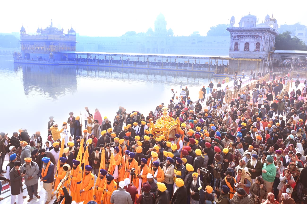 ਅੰਮ੍ਰਿਤਸਰ : ਦਸਵੇਂ ਪਾਤਸ਼ਾਹ ਸ੍ਰੀ ਗੁਰੂ ਗੋਬਿੰਦ ਸਿੰਘ ਜੀ ਦੇ ਪ੍ਰਕਾਸ਼ ਗੁਰਪੁਰਬ ਦੇ ਸਬੰਧ ਵਿਚ ਸ਼੍ਰੋਮਣੀ ਗੁਰਦੁਆਰਾ ਪ੍ਰਬੰਧਕ ਕਮੇਟੀ ਵੱਲੋਂ ਅੱਜ ਸ੍ਰੀ ਅਕਾਲ ਤਖ਼ਤ ਸਾਹਿਬ ਤੋਂ ਨਗਰ ਕੀਰਤਨ ਸਜਾਇਆ ਗਿਆ। ਸ੍ਰੀ ਗੁਰੂ ਗ੍ਰੰਥ ਸਾਹਿਬ ਜੀ ਦੀ ਛਤਰ ਛਾਇਆ ਹੇਠ ਅਤੇ ਪੰਜ ਪਿਆਰਿਆਂ ਦੀ ਅਗਵਾਈ ’ਚ ਸਜਾਏ ਗਏ ਨਗਰ ਕੀਰਤਨ ਦੀ ਆਰੰਭਤਾ ਮੌਕੇ ਸੱਚਖੰਡ ਸ੍ਰੀ ਹਰਿਮੰਦਰ ਸਾਹਿਬ ਦੇ ਮੁੱਖ ਗ੍ਰੰਥੀ ਅਤੇ ਸ੍ਰੀ ਅਕਾਲ ਤਖ਼ਤ ਸਾਹਿਬ ਦੇ ਜਥੇਦਾਰ ਗਿਆਨੀ ਰਘਬੀਰ ਸਿੰਘ ਨੇ ਸ੍ਰੀ ਗੁਰੂ ਗ੍ਰੰਥ ਸਾਹਿਬ ਜੀ ਦਾ ਪਾਵਨ ਸਰੂਪ ਪਾਲਕੀ ਸਾਹਿਬ ਵਿਚ ਸੁਸ਼ੋਭਿਤ ਕੀਤਾ।