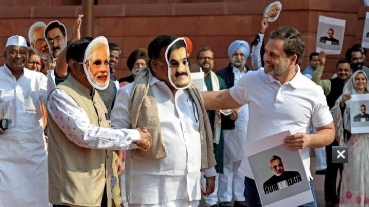 ਕਾਂਗਰਸ ਨੇ 1.19 ਮਿੰਟ ਦੀ ਗੱਲਬਾਤ ਦੀ ਵੀਡੀਓ ਸਾਂਝੀ ਕੀਤੀ ਹੈ। ਕਾਂਗਰਸ ਦੇ ਸੰਸਦ ਮੈਂਬਰ ਮਨਿਕਮ ਟੈਗੋਰ ਨੇ ਗੌਤਮ ਅਡਾਨੀ ਅਤੇ ਰਾਕਾਂਪਾ (ਸ਼ਰਦ ਪਵਾਰ) ਦੇ ਸੰਸਦ ਮੈਂਬਰ ਸ਼ਿਵਾਜੀ ਰਾਓ ਆਢਲ ਰਾਓ ਪਾਟਿਲ ਨੇ ਪ੍ਰਧਾਨ ਮੰਤਰੀ ਮੋਦੀ ਦਾ ਮੁਖੌਟਾ ਲਾਇਆ। ਰਾਹੁਲ ਨੇ ਸਵਾਲ ਕੀਤਾ ਕਿ ਅੱਜਕਲ ਕੀ ਹੋ ਰਿਹਾ ਹੈ ਭਰਾ? ਜਵਾਬ ਵਿਚ ਅਡਾਨੀ ਦਾ ਮੁਖੌਟਾ ਲਾਏ ਸੰਸਦ ਮੈਂਬਰ ਨੇ ਮੋਦੀ ਦਾ ਮੁਖੌਟਾ ਲਾਏ ਸੰਸਦ ਦੀ ਪਿੱਠ ਠੋਕੀ ਅਤੇ ਕਿਹਾ ਕਿ ਅੱਜਕਲ ਮੈਂ ਜੋ ਵੀ ਬੋਲਦਾ ਹਾਂ, ਇਹ ਕਰਦਾ ਹੈ।