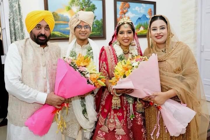 ਮੁੱਖ ਮੰਤਰੀ ਭਗਵੰਤ ਸਿੰਘ ਮਾਨ ਨੇ ਪਤਨੀ ਗੁਰਪ੍ਰੀਤ ਕੌਰ ਸਮੇਤ ਅਰਵਿੰਦ ਕੇਜਰੀਵਾਲ ਦੀ ਧੀ ਦੇ ਵਿਆਹ ’ਚ ਪਹੁੰਚ ਕੇ ਨਵੀਂ ਵਿਆਹੀ ਜੋੜੀ ਨੂੰ ਆਸ਼ੀਰਦਵਾਦ ਦਿੱਤਾ।