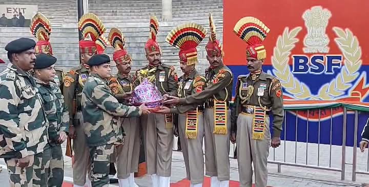 latest news punjab Uncategorized BSF ਨੇ ਗਣਤੰਤਰ ਦਿਵਸ ਮੌਕੇ ਅਟਾਰੀ-ਵਾਹਗਾ ਬਾਰਡਰ ‘ਤੇ ਲਹਿਰਾਇਆ ਤਿਰੰਗਾ adminpunjabJanuary 26, 2025 No Comments ਵੰਡੀ ਮਠਿਆਈ, ਦੇਖੋ ਤਸਵੀਰਾਂ