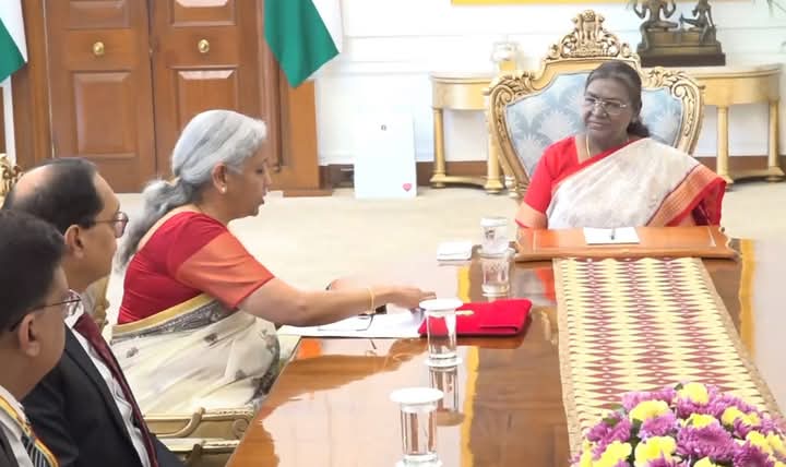 Saturday, Feb. 1, 2025, President Droupadi Murmu with Union Finance Minister Nirmala Sitharaman during a meeting before the latter presents the Union Budget 2025-26, at the Rashtrapati Bhavan, in New Delhi.New Delhi: President Droupadi Murmu with Union Finance Minister Nirmala Sitharaman during a meeting before the latter presents the Union Budget 2025-26, at the Rashtrapati Bhavan, in New Delhi.