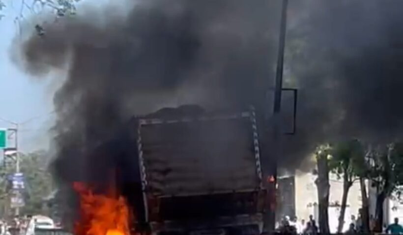 ਚੌਲਾ ਨਾਲ ਭਰੇ ਟਰੱਕ ਨੂੰ ਲੱਗੀ ਅੱਗ