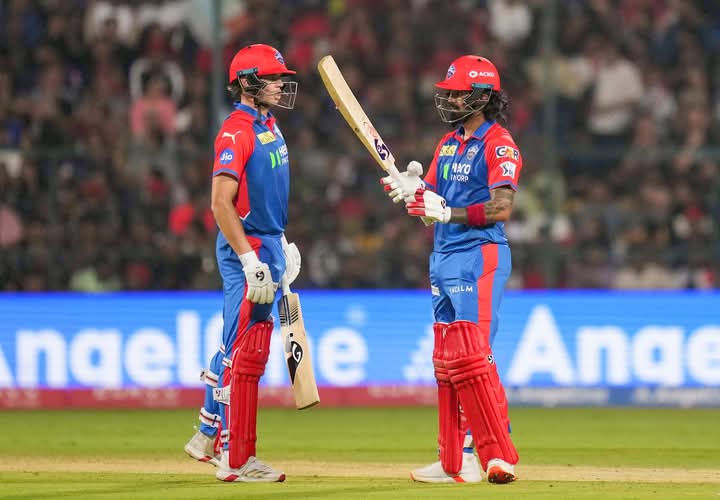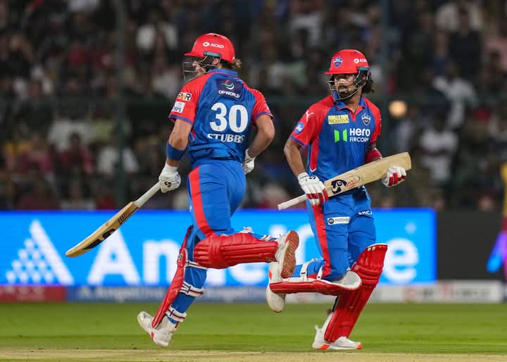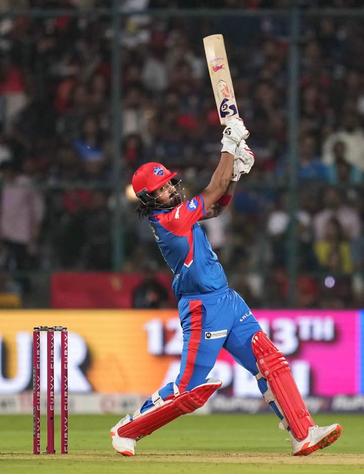 Bengaluru: Delhi Capitals’ KL Rahul celebrates his half century with Tristan Stubbs during an Indian Premier League (IPL) 2025 T20 cricket match between Royal Challengers Bengaluru and Delhi Capitals, at the M Chinnaswamy Stadium, in Bengaluru.Bengaluru: Delhi Capitals’ Tristan Stubbs plays a shot during an Indian Premier League (IPL) 2025 T20 cricket match between Royal Challengers Bengaluru and Delhi Capitals, at the M Chinnaswamy Stadium, in Bengaluru,Bengaluru: Delhi Capitals’ KL Rahul and Tristan Stubbs run between the wickets during an Indian Premier League (IPL) 2025 T20 cricket match between Royal Challengers Bengaluru and Delhi Capitals, at the M Chinnaswamy Stadium, in Bengaluru, Karnataka,Bengaluru: Delhi Capitals’ Faf du Plessis plays a shot during an Indian Premier League (IPL) 2025 T20 cricket match between Royal Challengers Bengaluru and Delhi Capitals, at the M Chinnaswamy Stadium, in Bengaluru, Karnataka