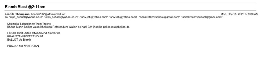 ਈਮੇਲ ’ਚ ਲਿਖਿਆ : ਧਮਾਕੇ @ 2:11 ਪੀ. ਐੱਮ.