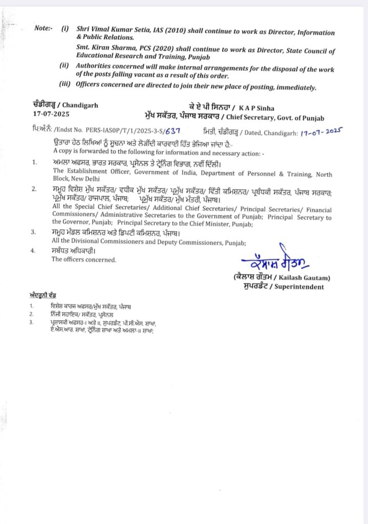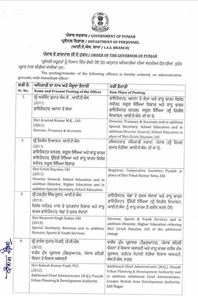latest news punjab ਆਈ. ਏ. ਐੱਸ./ਪੀ. ਸੀ. ਐੱਸ. ਅਧਿਕਾਰੀਆਂ ਦੇ ਤਬਾਦਲੇ Khushi khanJuly 17, 2025 No Comments IAS/PCS officersPunjab GovtPunjab WindowTransfers ਚੰਡੀਗੜ੍ਹ, 17 ਜੁਲਾਈ : ਪੰਜਾਬ ਸਰਕਾਰ ਵੱਲੋਂ IAS ਤੇ PCS ਅਧਿਕਾਰੀਆ ਦੀਆਂ ਬਦਲੀਆਂ ਕੀਤੀਆਂ ਗਈਆਂ ਹਨ।